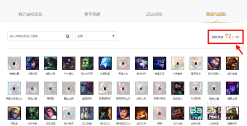 此处查看本身已采办的英雄、皮肤了,在列表右上角显示拥有的英雄数目/总数目。