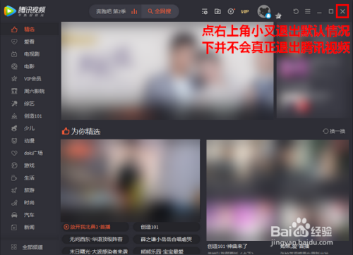 在此需要提醒大师注重的是,在默认环境下,我们光是点击腾讯视频本家儿界面右上角的小叉是不会彻底退出腾讯视频的。它只是退居到了后台,并没有真正从内存中退出。