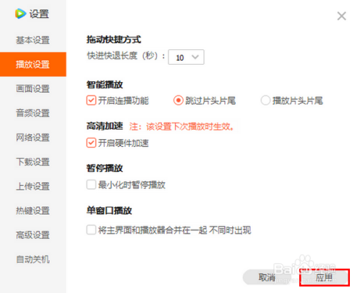 这时,将会打开设置窗口。在设置窗口的左侧,点击“播放设置”。