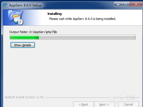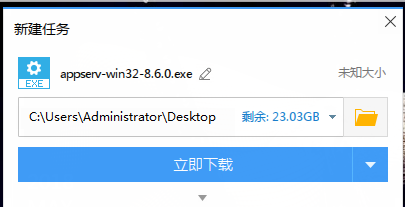 在弹出的下载对话框中选摘要下载的路劲,点击下载,期待下载完当作。下载完当作后,双击打开appserv-win32-8.6.0.exe,进入安装。