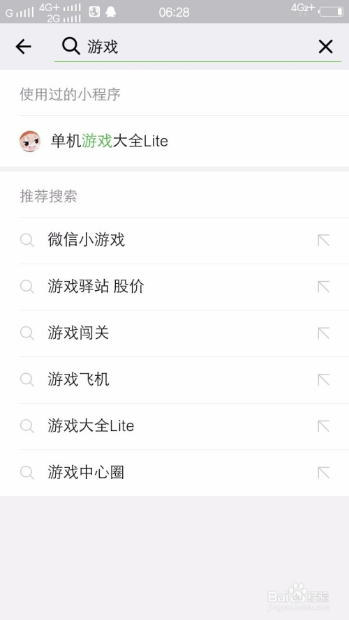 在搜刮小法式页面,右上角有一个搜刮图标,点击这个搜刮图标,输入游戏或者微信小游戏,然后点击下方保举搜刮里的微信小游戏进入
