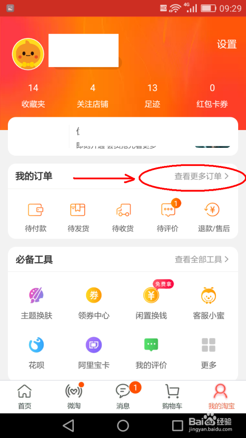 在我的淘宝页面“我的订单”点击“查看更多订单”。