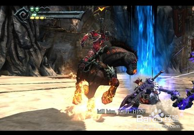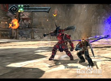 寻回扑灭天驹之后,只要画面右上方的天驹图示亮起、呈现按下LB键与RB键的提醒,War就能呼唤出扑灭天驹。乘着扑灭天驹一路砍杀并回到先前有巨虫匿伏的沙地,War旋即进入另一场头子战,与巨虫Ash Titan对决。