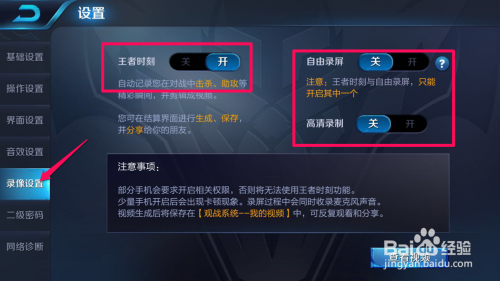 点开高清录制,录制视频有两个,一个是王者时刻,一个是自由录屏。