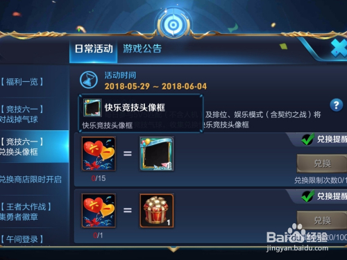 收集足够的六一气球之后就可以打开活动中的兑换头像框的图标,15个气球就可以兑换永远欢愉竞技头像框了。