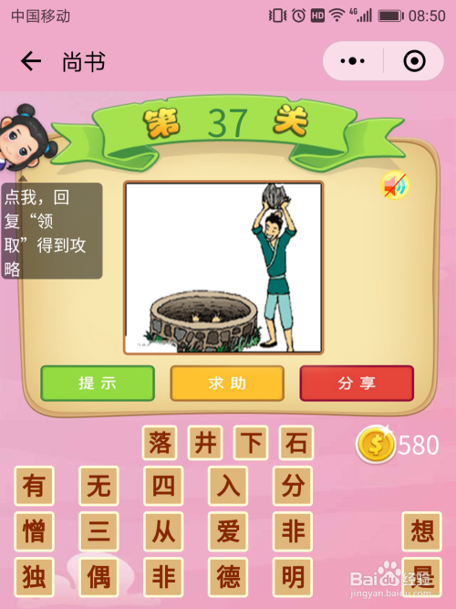 尚书37关谜底:一个标的目的井里面扔石头,这就是【雪上加霜】。