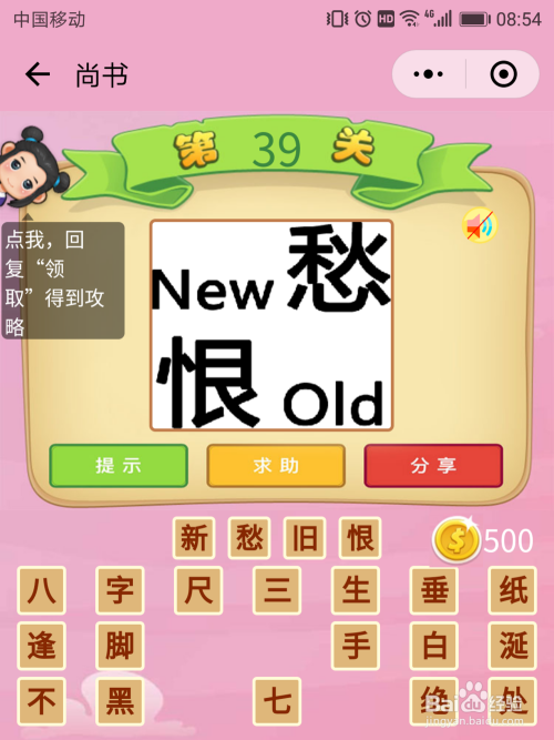 尚书39关谜底:将英文翻译出来后天然能猜到谜底是【新仇宿恨】。