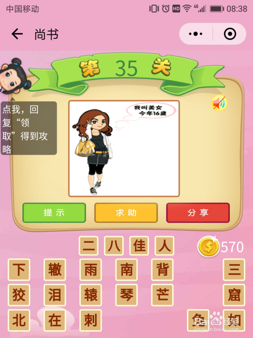 尚书35关谜底:16岁又被称为二八韶华,美男就是佳人的意思,那么谜底是【妙龄少女】。