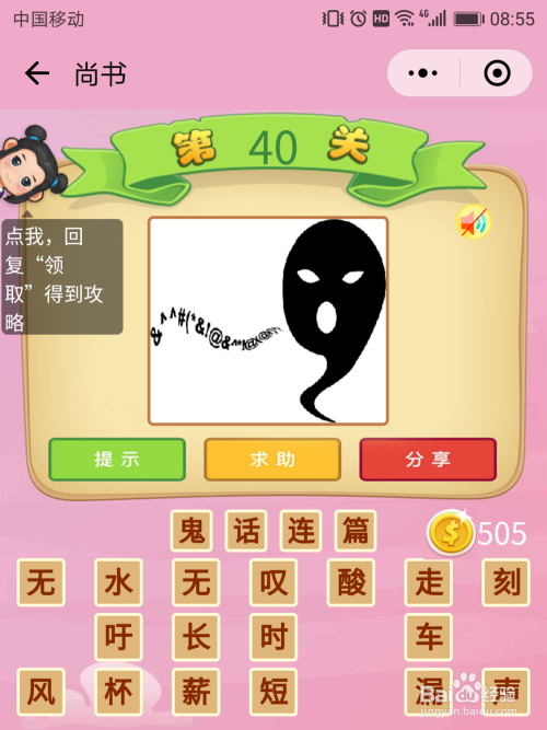 尚书40关谜底:一个鬼说了良多话,他说的话就是鬼话,良多话就是连篇,那么构成【鬼话连篇】。