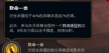 本家儿符文页第四个小符文选择致命一击 对于残血英雄,赵信的危险输出能力会晋升百分之七,这可以让赵信在丝血反杀,或者残血对攻的时辰,占有更多的优势。