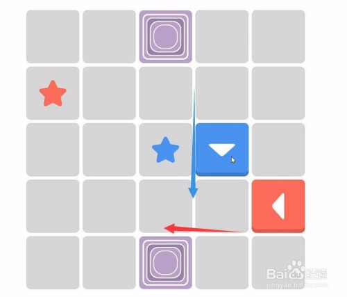 这一关需要红色进行变偏向,红右二进步,蓝色标的目的上1,红箭头再一向左推。