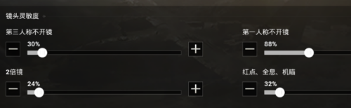 接着是开镜之后的活络度设置,这里不要设置的太高,因为过高的话你的8倍镜就找不到仇敌的头部了。