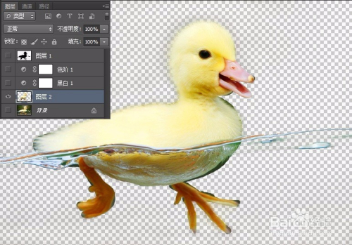 3、恰当的调整画笔大小,避开鸭子毛发边缘,对鸭子进行涂抹。
