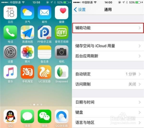 点击进入-设置-通用-界面,在此中点击--辅助功能---选项进入。