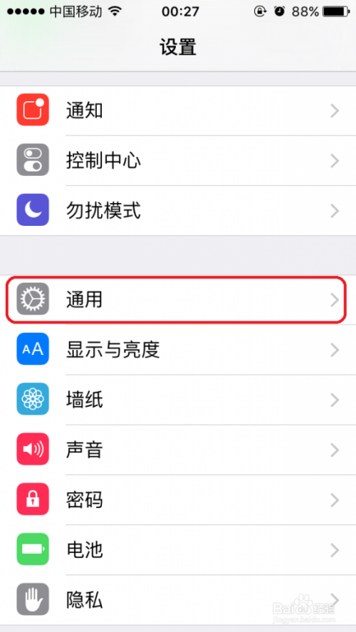 1设置---点击---通用,如图
