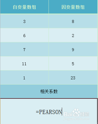 第一步,在响应的单位格输入Excel函数公式,也就是输入 =PEARSON;