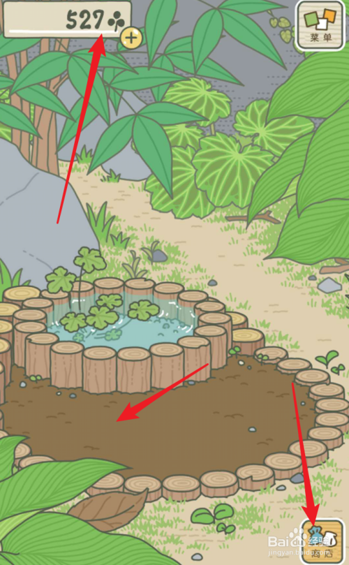 游戏起头,在天井里,我们就可以看到这里有一年夜片的三叶草,这是游戏中的货泉,采办工具是需要用这些三叶草来付出的。