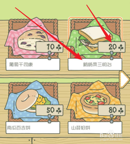 我们首要的是要采办吃的工具,在这里点击二下看中的食物就可以进行采办了。