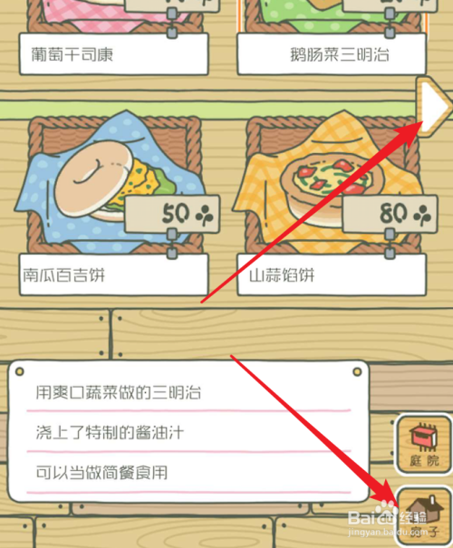 除了采办食物,点击上方的标的目的右箭头,还可以采办其他的器具,操作是一样的。