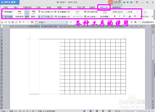 然后就可以看到15列15行的表格就建好了。也就是插入表格当作功了