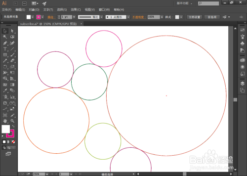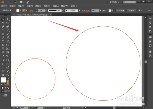 点击描边为橙色的圆的边缘,然后再点击描边色为棕色的圆的边缘,2个圆的相切圆就呈现了,如图: