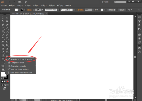 打开AI软件,新建文档,选择subscribe插件东西【Circle by 2 or 3 points】,即2个点或3个点建立一个圆,如图所示: