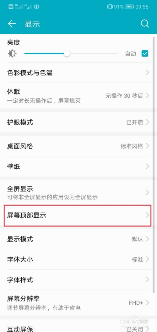 第三步:然后打开屏幕顶部显示。