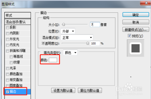 对图层1应用“描边”图层样式,颜色选择白色,大小设置一个合适的值,这里设为7。