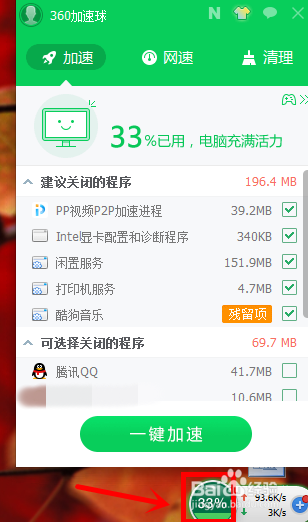 我们要利用该加快球帮我们为电脑进行加快,我们将鼠标移至加快球上;
