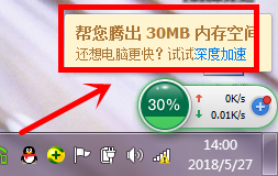 纷歧会,当加快球完当作工作后,我们可在电脑屏幕右下方看到腾出内存空间的提醒。