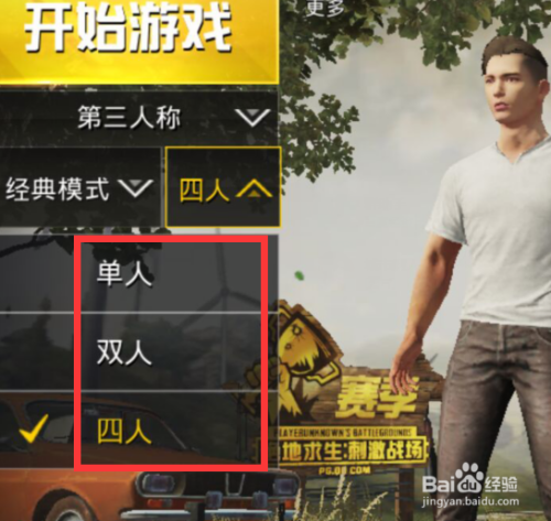 我们点击4排, 点击之后选择经典模式,下面默认是勾选主动为我们匹配队友的,若是这时辰我们起头游戏那就是4排,你会有3个队友。