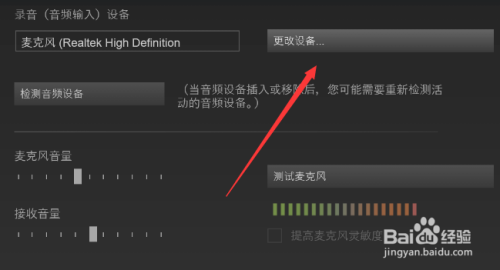 然后最主要的一个步调,你当前的声音录入设备是什么设备就选择什么设备。