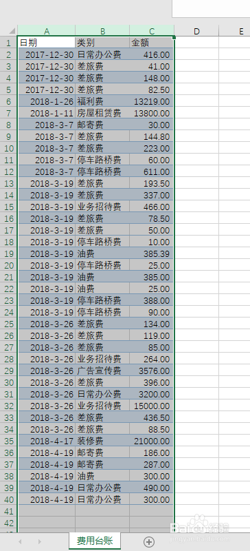 首先,用excel表格挂号如图所示的费用台账