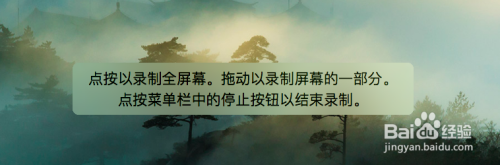 屏幕中呈现如下文字,点击则录制全屏,或者按下鼠标拖动选择录屏的规模