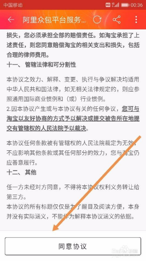 点击【当即报名】后,系统显示【阿里众包和谈有所更新】,我们点击【前去查看】,然后点击【赞成和谈】,如图所示~