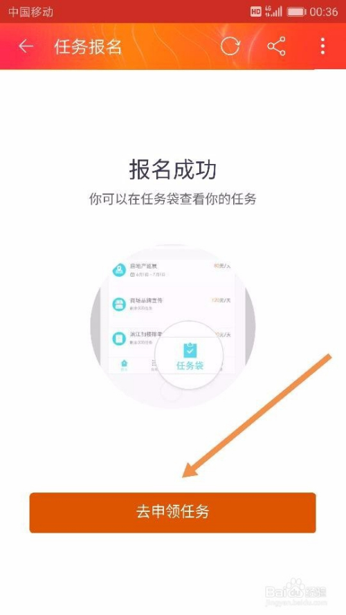报名当作功后,系统会显示【报名当作功】字样,然后我们点击底部的【去申领使命】,在呈现的界面中再次点击【去申领使命】,如图所示~