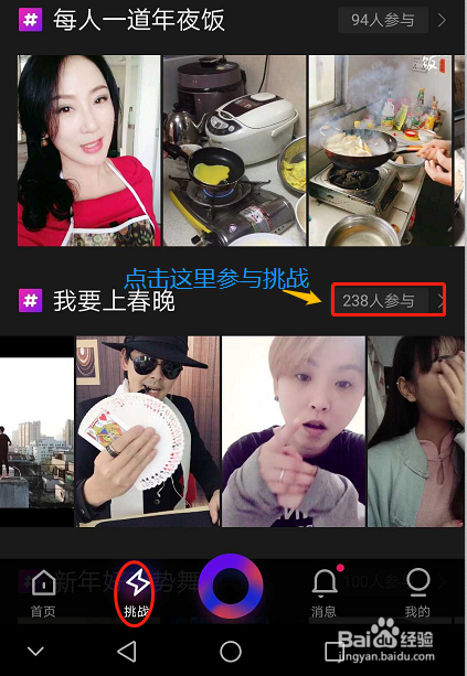 登录今后就可以点击页面下朴直中心的按钮进行视频拍摄了,不外百度为了鼓动勉励大师都来下载利用Nani,还推出了介入挑战得红包的活动,若是有这方面乐趣,可以点击"挑战",然后点击后面的介入人数就可以加入挑战了,如下图;