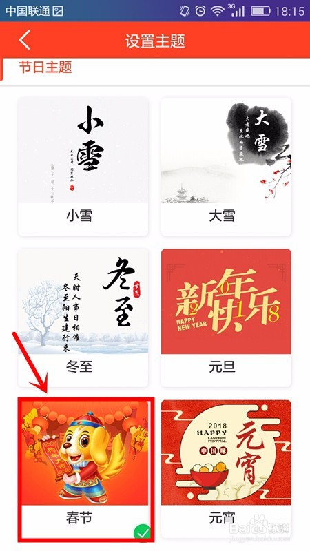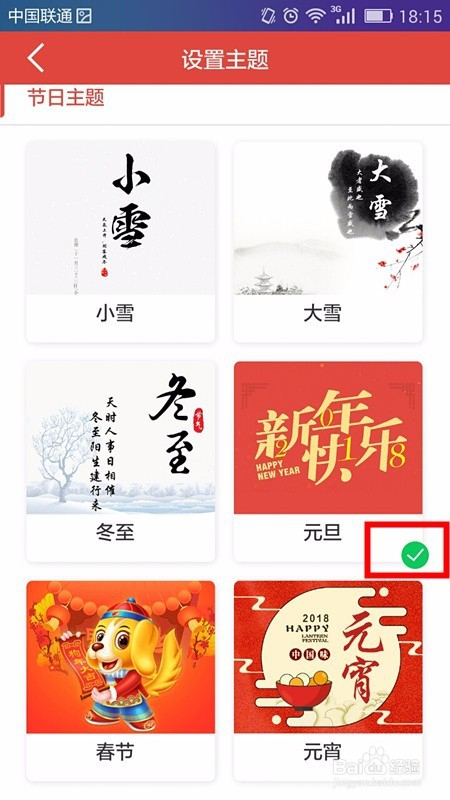 假如我们要点窜为春节,我们直接点击春节本家儿题即可完当作设置。