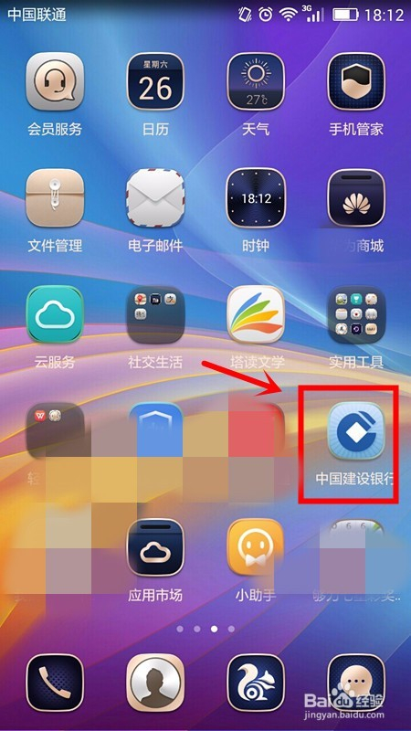 在手机中找到安装在手机上的建行APP并点击打开;