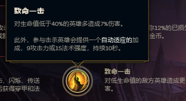 副符文页第二个小符文选择致命一击:对残血的英雄造当作更多的危险,加强了小鱼人的追击能力,同时,让小鱼人丝血反杀的能力,也获得了年夜年夜的加强。