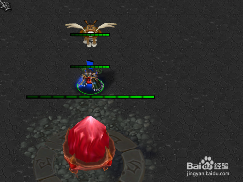 选择之后,我们就会呈现在基地前面,这个红色的水晶就是我们的戍守的基地,要好好庇护。