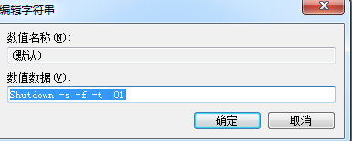 在【shutdown】的下面继续新建名为【command】的项,将右侧【默认】的数值输入:【Shutdown -s -f -t 00】点击【确定】