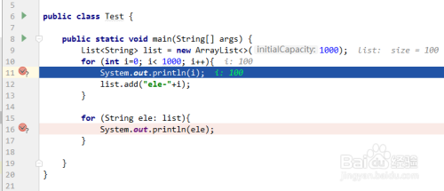 已debug体例启动代码,发现进入断点,此时i的值正好为100
