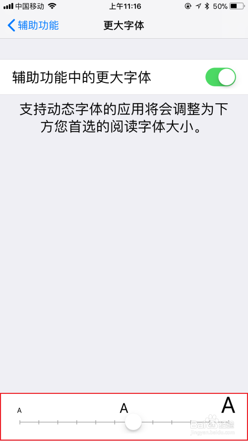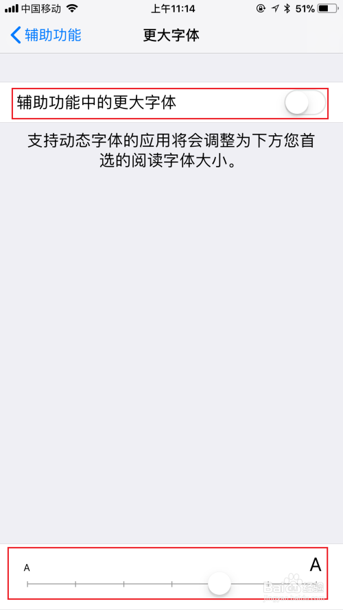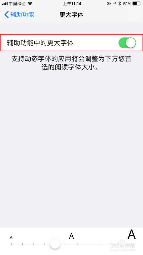 开启“辅助功能中更年夜字体”的选项;