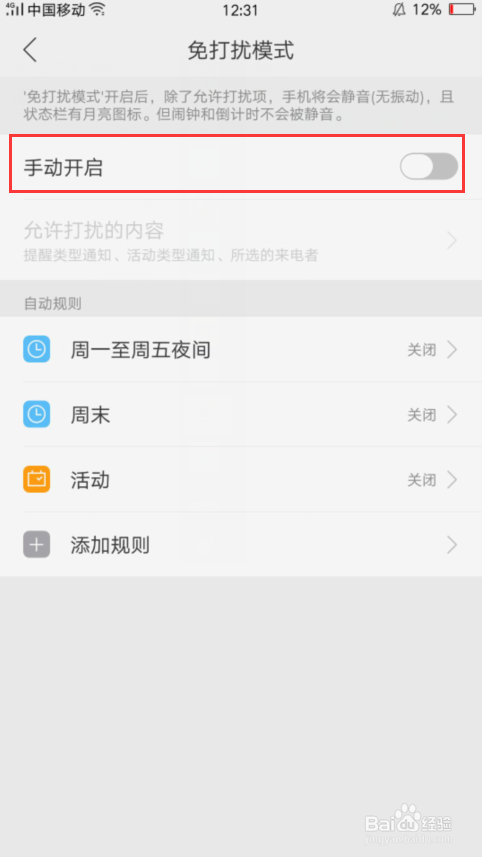 若是是处于此模式,可以经由过程手机设置--免打搅模式--将免打搅模式封闭,再看看。