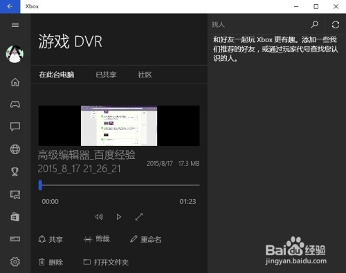 如何查看录制的视频?很简单,只需打开Xbox------>游戏DVR,即可见到本身录制的视频,单击它便能不雅看并浏览其具体内容,还能进行剪辑、重定名、浏览其存放位置等操作,十分便当。