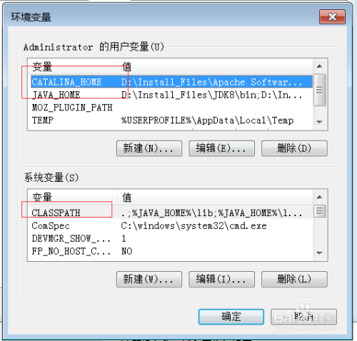 变量名:CATALINA_HOME,变量值:Tomcat的安装路径;