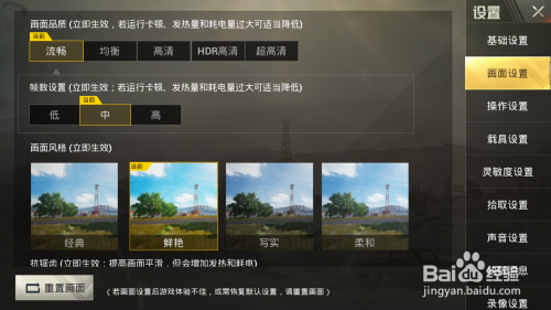 画面品质:流利 帧数设置:中