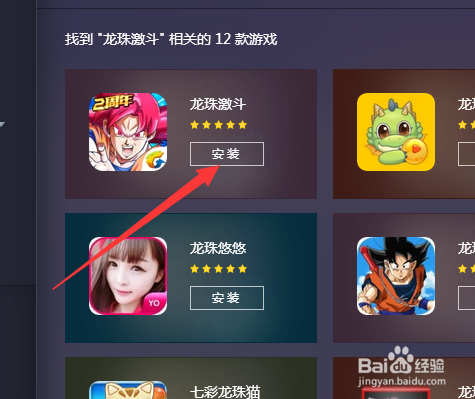 接下来在搜刮出来的游戏中,找到龙珠激斗,进行安装。