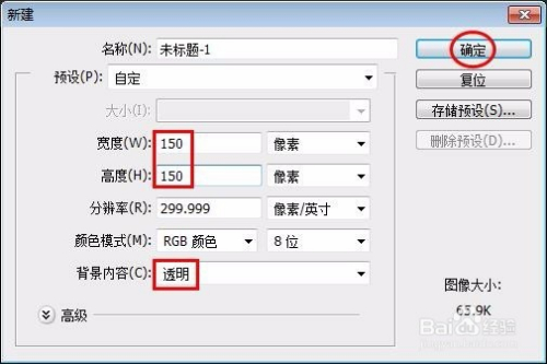 第一步:打开ps软件,新建一个150*150的画布。